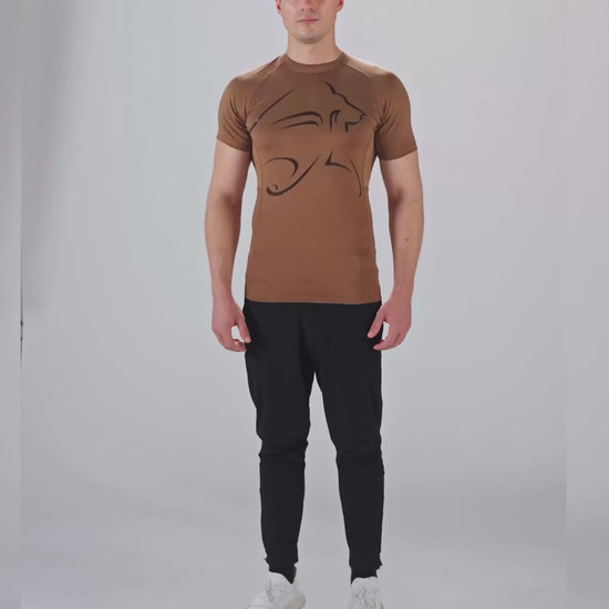 Feather-light and form-fitting, the Forge Fit Compression Tee moves like your second skin, with the lion emblem symbolizing resilience, and power.